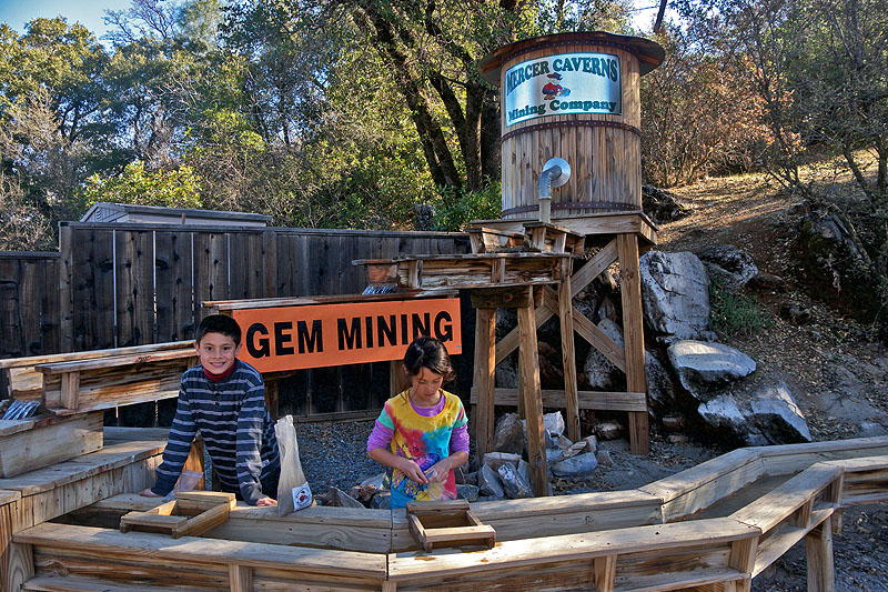 Experience what it was like to mine for minerals in the 1800s at the Mercer Caverns Mining Company. Several kinds of "mining rough" may be purchased so that guests may experience first hand what it is like to mine for minerals in a mining sluice. As you wash away the mining rough you will discover a variety of mineral or fossil treasures in each bag. Each bag of mining rough comes with an identification card to help you identify the minerals or fossils that you find. You also get a "keeper" bag so that you can take any treasures that you find home with you.