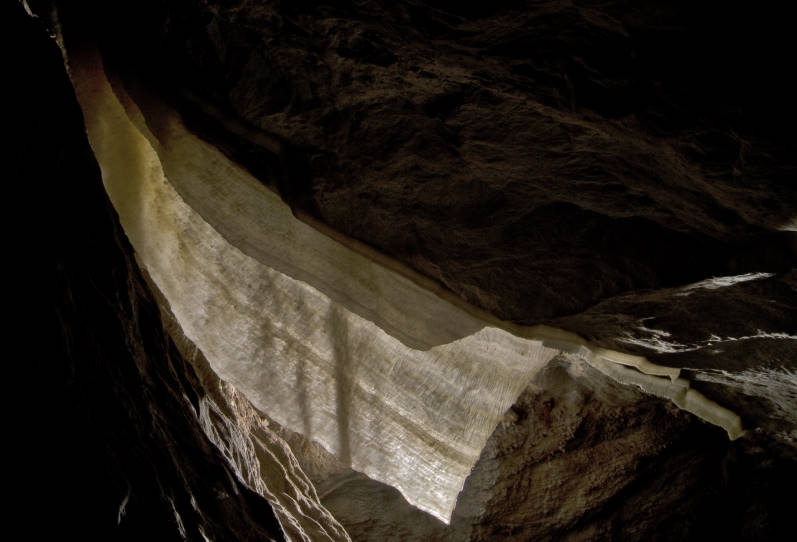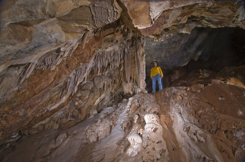 The view down into Gothic Hall, the cave's largest room. This is only part of it.